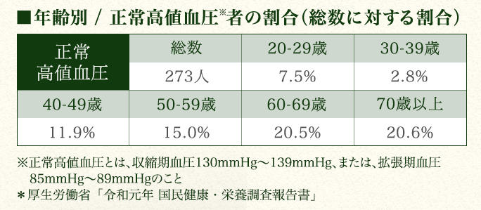 *高めの血圧とは、正常高値血圧(収縮期血圧130mmHg~139mmHg、または拡張期血圧85mmHg~89mmHg)のことです。